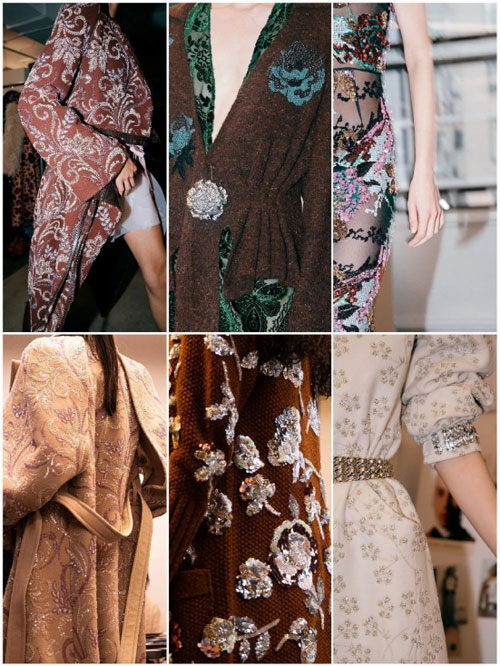 面料的創意也值得細數,意大利西裝呢料結合芍藥繡花與鉆飾,質感毛衣上點綴脈脈溫情的芍藥珠花,改良旗袍禮服上華麗的芍藥重工刺繡……一如大秀主題“繁花”一樣,“花”是本季主旋律。多達兩百多種的芍藥,給予王陶豐富的靈感:多瓣重瓣的芍藥花型,也讓原創圖樣的生命力愈發旺盛,布滿各種工藝、各種技法的原創花卉圖案新穎面料撲面而來。繡花、印花、提花、串珠、絎縫、車縫、壓花等手法在面料上的創意再造,與綺麗的中式搭色相結合,勾勒出國色天香的丹青畫卷,讓人一眼夢回《春江花月夜》中“江流宛轉,月照花林”的唯美場景。