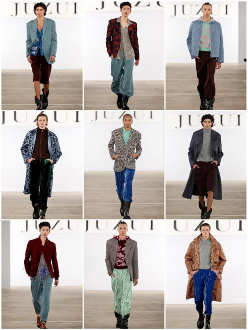 值得一提的是,本次發布的秀款還有部分男裝,這應該是王陶首次在紐約時裝周發表男裝作品。王陶師從日本著名設計師小筱順子(KOSHINO JUNKO)擔任近身助理設計師,負責的正是男裝線,早年曾多次跟隨老師赴巴黎時裝周舉行發布會。此次“重拾”男裝設計,王陶交出的是“繁花”主題下的“花樣美男”,男女模特同臺穿梭形成的華美氣氛相當撩人,為時尚人士提供了觸手可及的“氣質另一面”。