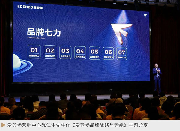 愛登堡(中國)有限公司營銷總監陳仁生先生以《愛登堡品牌戰略與勢能》為主題,向大家全面闡述愛登堡2024年的品牌經營策略。他深入解析了愛登堡品牌七力和“終端四化”品牌戰略建設門店七一工程,實現服務升級。同時點明了愛登堡終端門店的服務本質:服務就是不斷提供消費者心智需求的解決方案。