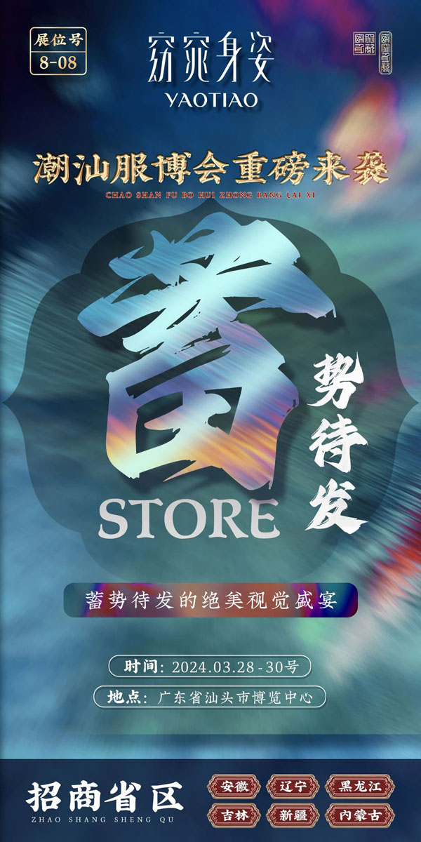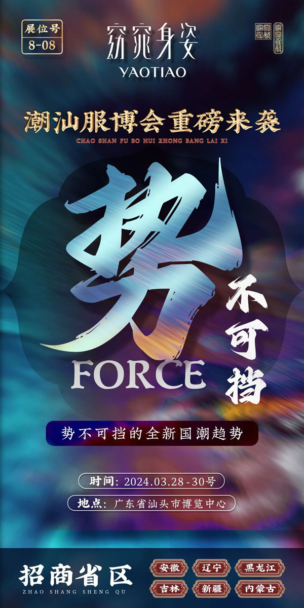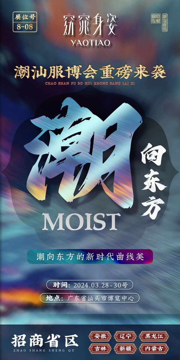 2024年3月28日~30日,窈窕身姿受邀參加第三屆中國·潮汕國際紡織服裝博覽會,擁抱未來趨勢,秀出國潮美學,把控潮流元素,打造時尚潮流,預見新時代實體內新風尚,揭幕更多關于東方美學的定義。