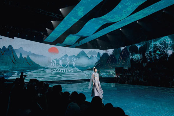 國潮大秀,震撼登場,窈窕身姿攜眾多新品亮相,以衣載道,凝聚萬千東方詩意,詮釋品牌美學,再造千萬里風華。