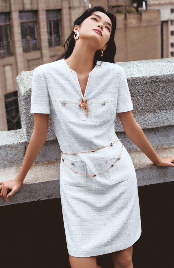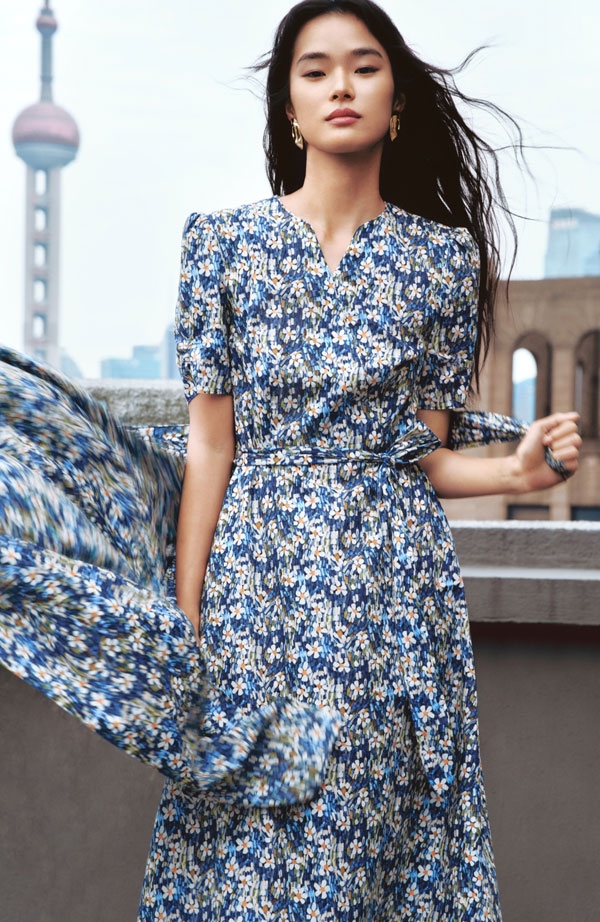 JUZUI玖姿夏季系列通過對都市中多元女性的觀察,以服裝的為表達媒介,描繪出具有東方風韻的經典女性氣質,貫穿在服飾面料肌理上的花朵,激蕩出嶄新的視覺層次。高級利落的廓形或是靈動飄逸的裙裝,呈以混合多元概念的都市氛圍。