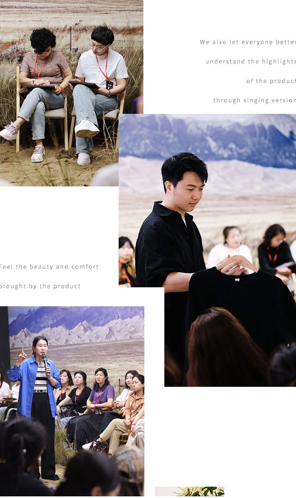 訂貨的現場氛圍也是十分的熱烈,我們通過模特走秀動態展示產品的同時,我們還通過唱版和大家介紹產品的設計點,讓大家更好了解我們每一款產品的設計亮點和理念,讓大家感受產品帶來的美與舒適。