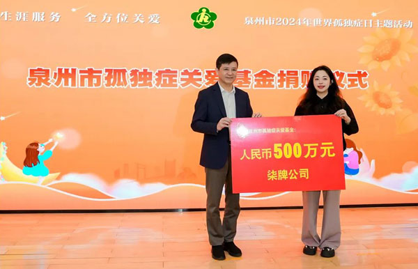 柒牌獻愛,點亮孤獨之光。4月2日,柒牌公司參與泉州市舉辦的“全生涯服務,全方位關愛”世界孤獨日主題活動。與會活動上,柒牌公司向泉州市孤獨癥關愛基金捐贈500萬元,用實際行動踐行企業社會責任,幫助孤獨癥兒童群體走出困境。