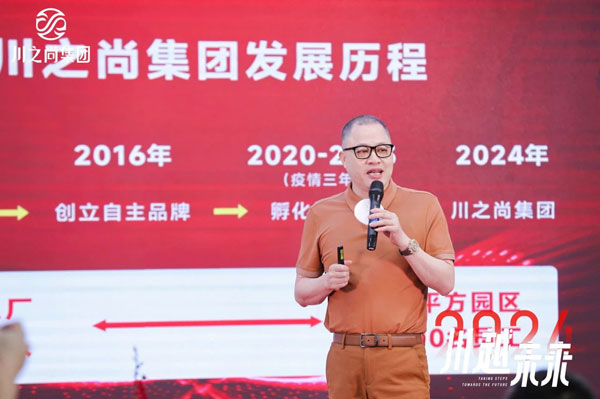 川之尚集團董事長陳彥宇先生上臺發表致辭,回顧了川之尚集團從2009年至今的發展歷程,集團從單一品牌發展成為涵蓋多個子品牌的大平臺,一路走來感謝合作伙伴和家人們的相伴相隨。