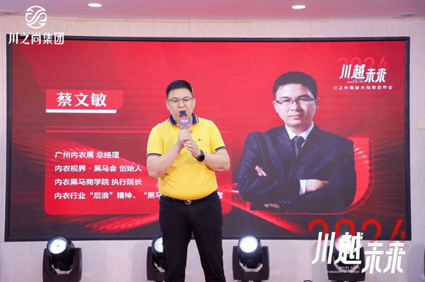 廣州內衣展總經理、內衣視界·黑馬會創始人蔡文敏先生,為與會者深入分析了當前內衣行業的發展現狀,還展示了川之尚集團在行業中的綜合實力,并強調了集團在構建共創共贏大平臺方面的努力和成就。