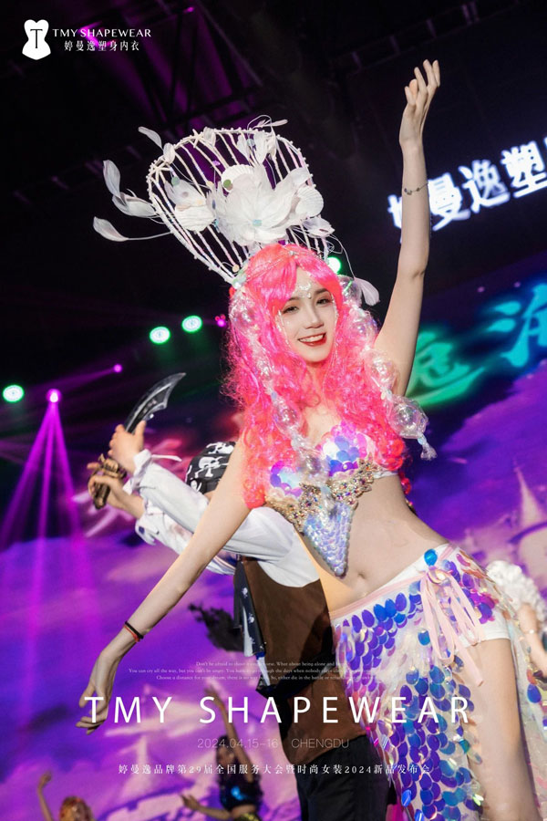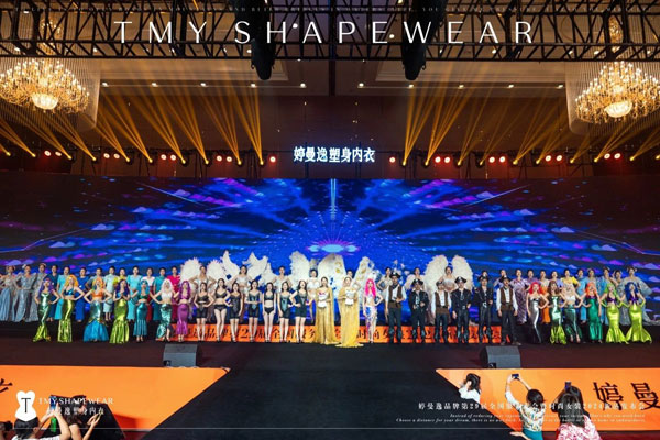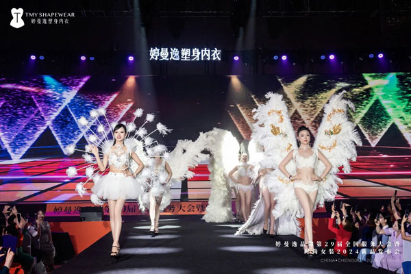 在婷曼逸時尚女裝新品秀的最后,模特們還展示了婷曼逸塑身內衣產品。