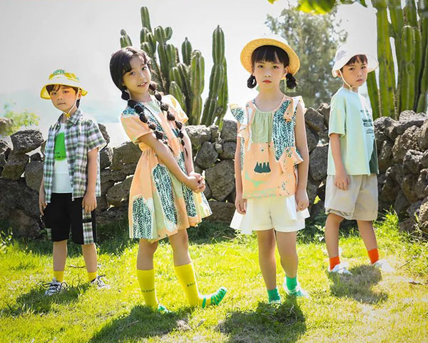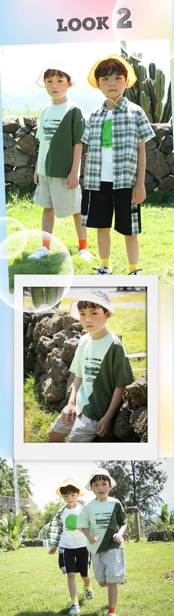 色彩主要以綠色為主,休閑寬松的版型T恤/襯衣,再點綴簡約英文字母,搭配一條西裝款休閑褲,街頭潮童形象清爽干凈,簡約時尚就是可愛一族。