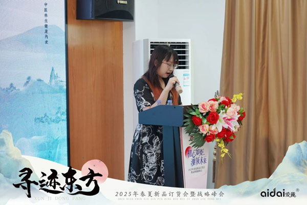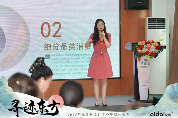 由愛戴設計師團隊代表,向現場家人介紹本次會議的主角-愛戴2025春夏新品的獨到之處。簡約流暢的線條,流暢立體的剪裁,在保證舒適的同時,展現女性曲線美,享受到健康與美麗的雙重滋養。