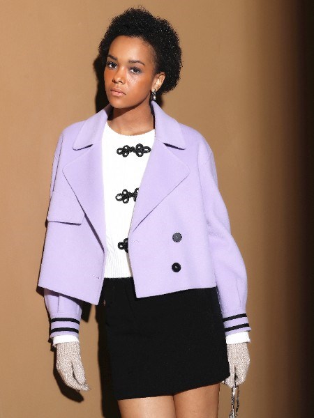 紫色,優(yōu)雅而貴氣,總能輕易地觸動(dòng)人心底柔軟的部分。左叁采用英倫風(fēng)翻領(lǐng)設(shè)計(jì),簡(jiǎn)約而不失精致感。面料細(xì)膩柔軟,觸感佳,讓人一見(jiàn)傾心。短款的設(shè)計(jì)能夠巧妙地拉長(zhǎng)身材比例,讓穿著者顯得更加高挑迷人。正肩的簡(jiǎn)潔裁剪與知性氣質(zhì),讓整體造型更加精簡(jiǎn)優(yōu)雅。