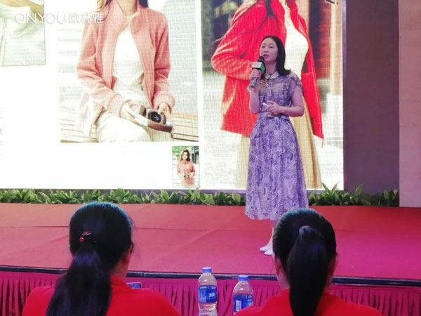 緊接著,歐林雅公司商品總監羅紅女士從流行元素、商品規劃、暢銷單品這3個角度,對2025春夏新品展開了全面而深入的解析。2025春夏新品我們以大眾精品、大眾爆品為原則進行開發,致力于滿足市場的剛需需求,新品以基礎款、標準款為主導,款式經久耐看。
