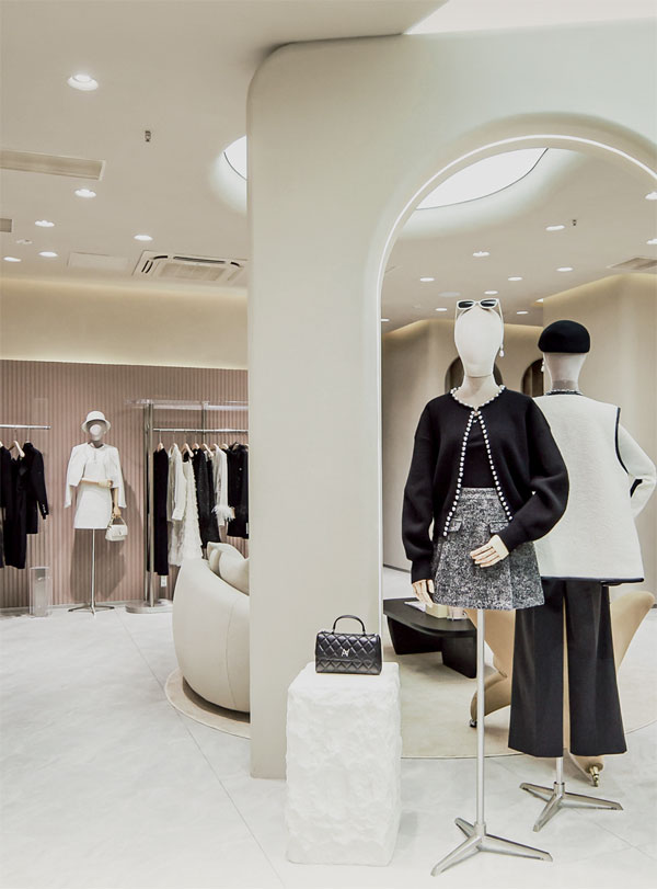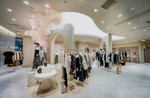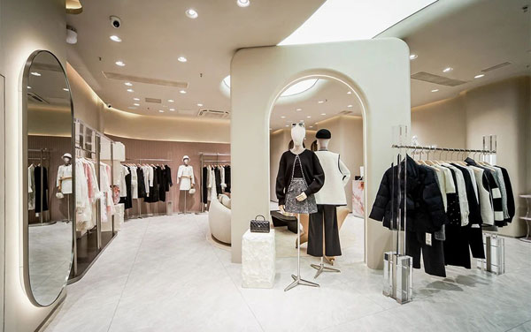 圓弧動線優雅交織,整體空間呈現曲面延伸的感官體驗,延續名媛風范,擷取風格底色構建輕奢優雅的舒適感。在圓弧曲線交融的空間內敘述服裝故事,見證新時代女性的生活質感與穿衣哲學。