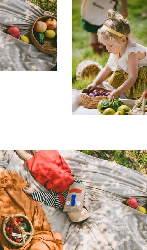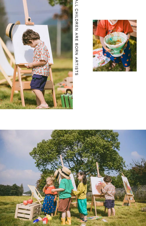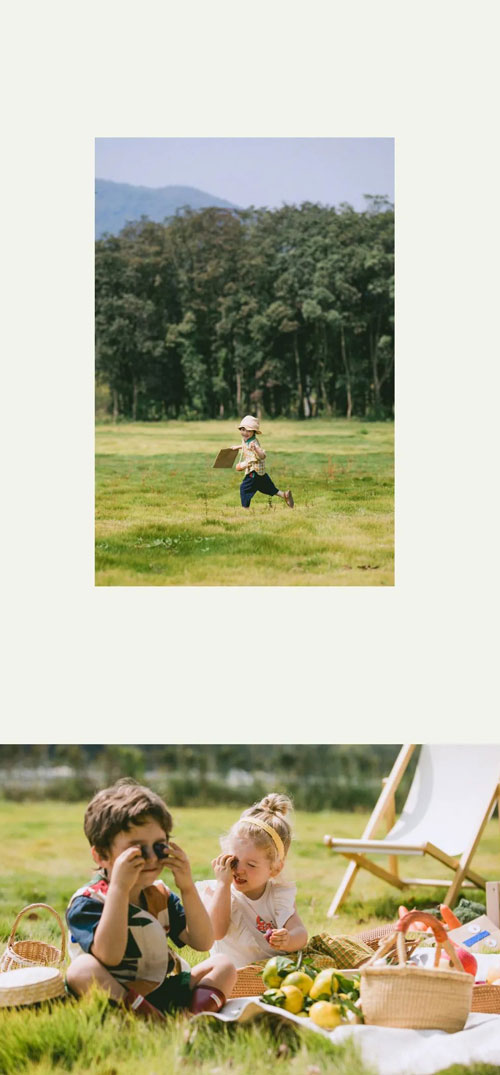 春夏系列,我們從大自然中獲取靈感,以“Hang out”為主題,與孩子們一起共同探索大自然的色彩,尋找森林里的寶藏,或者靜靜的觀察云朵的變化。設計師天馬行空的想象力,用色彩與圖案將春夏的盎然生機描繪于衣物之上,輕盈柔軟的織物被賦予自然的氣息,一起成為孩子們寶貴的童年記憶。