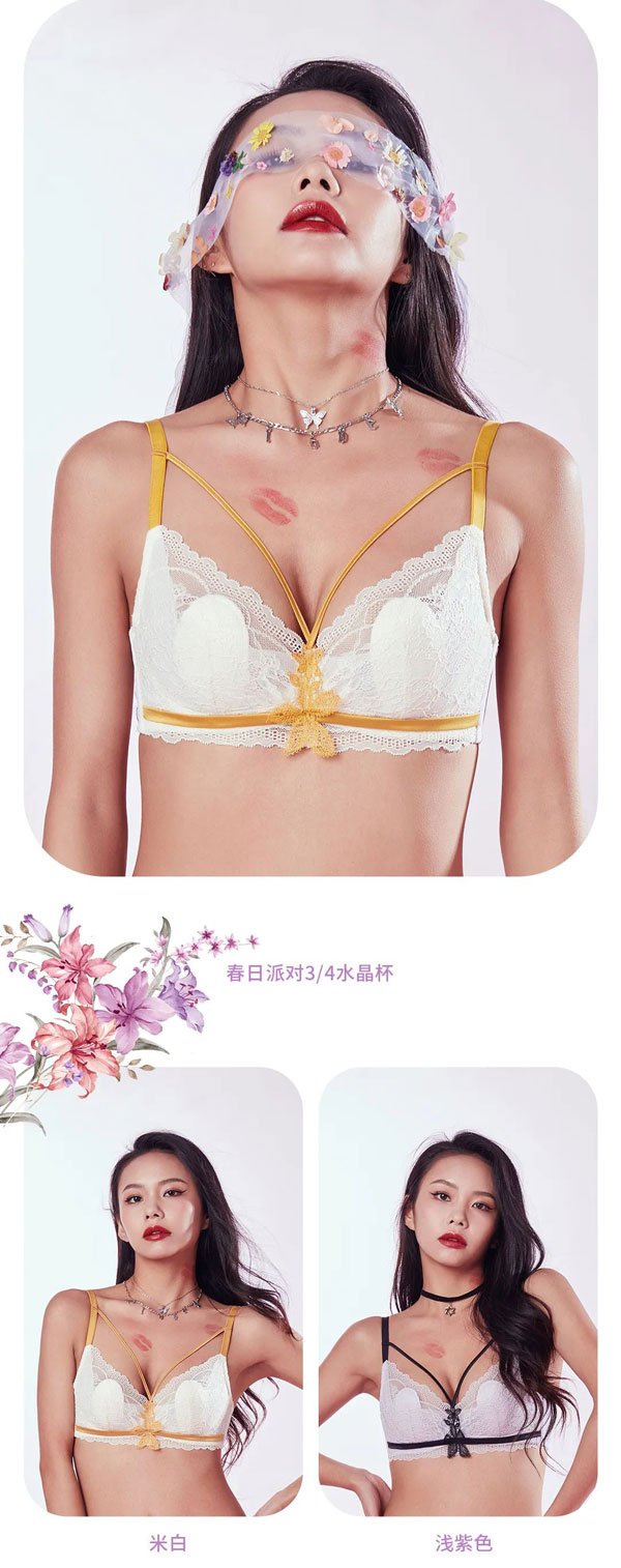 3/4超薄水晶杯、記憶軟鋼圈,完美解決了春夏季太熱,杯太厚容易出汗的尷尬情況;杯里選用了乳膠棉兔耳朵杯,小巧精致還能有效的防止凸點。