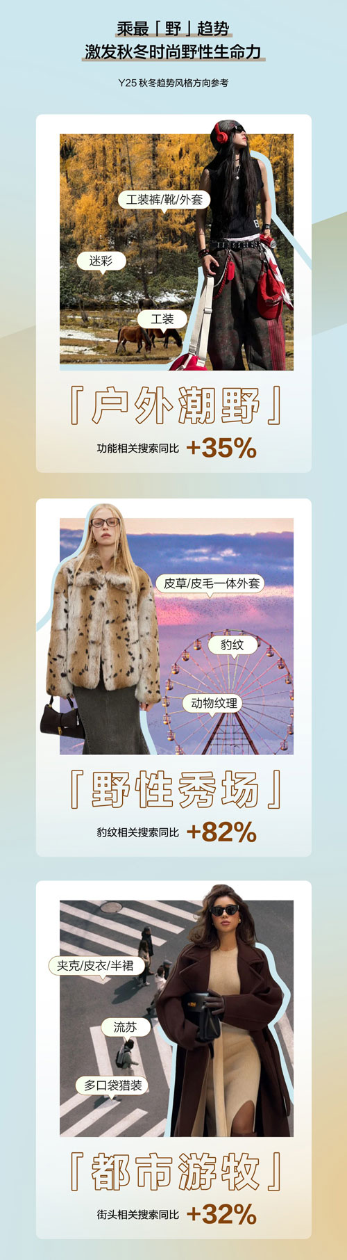 受大促節點和氣溫波動影響,「羽絨服」搜索熱度將持續上升,用戶對功能性要求提升的同時,也更加關注其時尚屬性與戶外新場景穿搭;