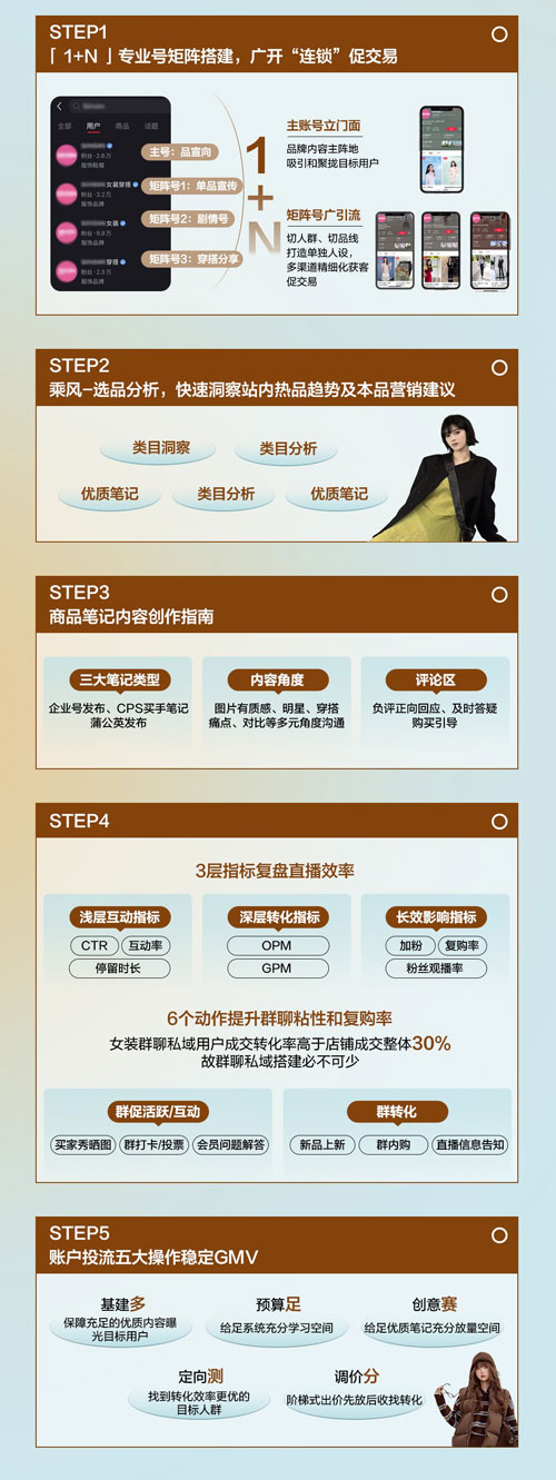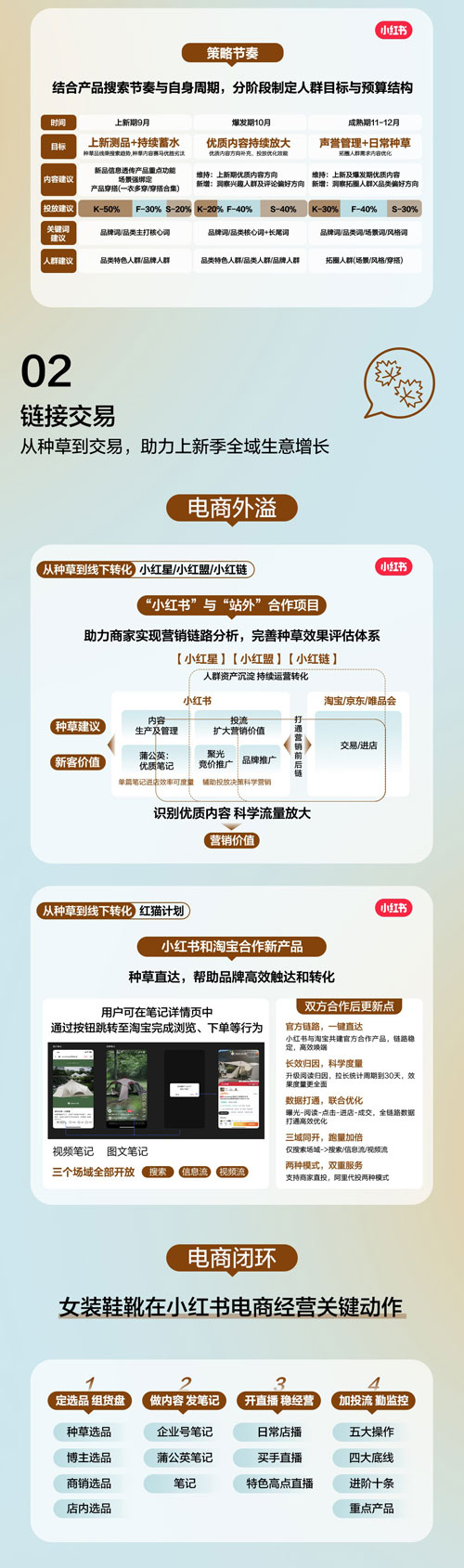 鏈接交易:小紅書電商閉環為品牌打通了種轉一體化鏈路,構建全周期、多場景的交易觸點。在秋冬上新期間,品牌可通過搭建「1+N」專業號矩陣,靈活優化種草策略與內容投放,實現精細化運營,在持續互動中強化用戶對品牌調性與產品價值的認知,沉淀私域人群資產。