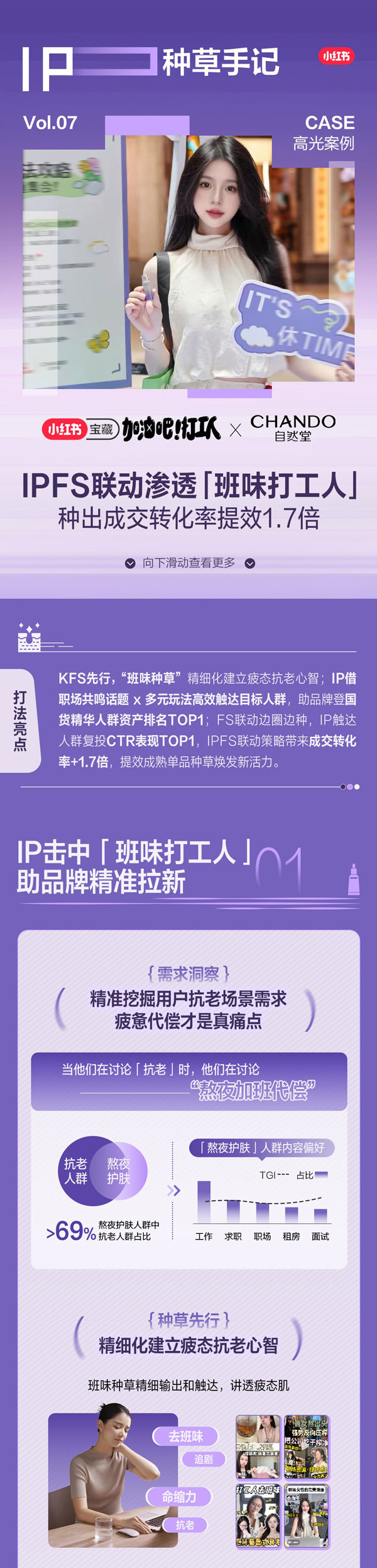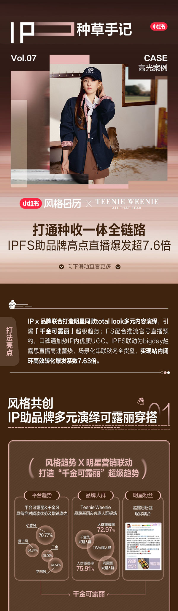 隨著營銷進(jìn)入“精耕細(xì)作”時(shí)代,單次的IP曝光已難以支撐品牌對(duì)長效增長與量化結(jié)果的訴求。實(shí)踐案例證明,品牌合作?紅書營銷IP的同時(shí),如果與FS產(chǎn)品種草策略相互協(xié)同,有助于進(jìn)?步對(duì)話消費(fèi)者,放?品牌在?紅書的營銷種草成效,為品牌撬動(dòng)更?的營銷收益,收獲更豐富的經(jīng)營資產(chǎn)。