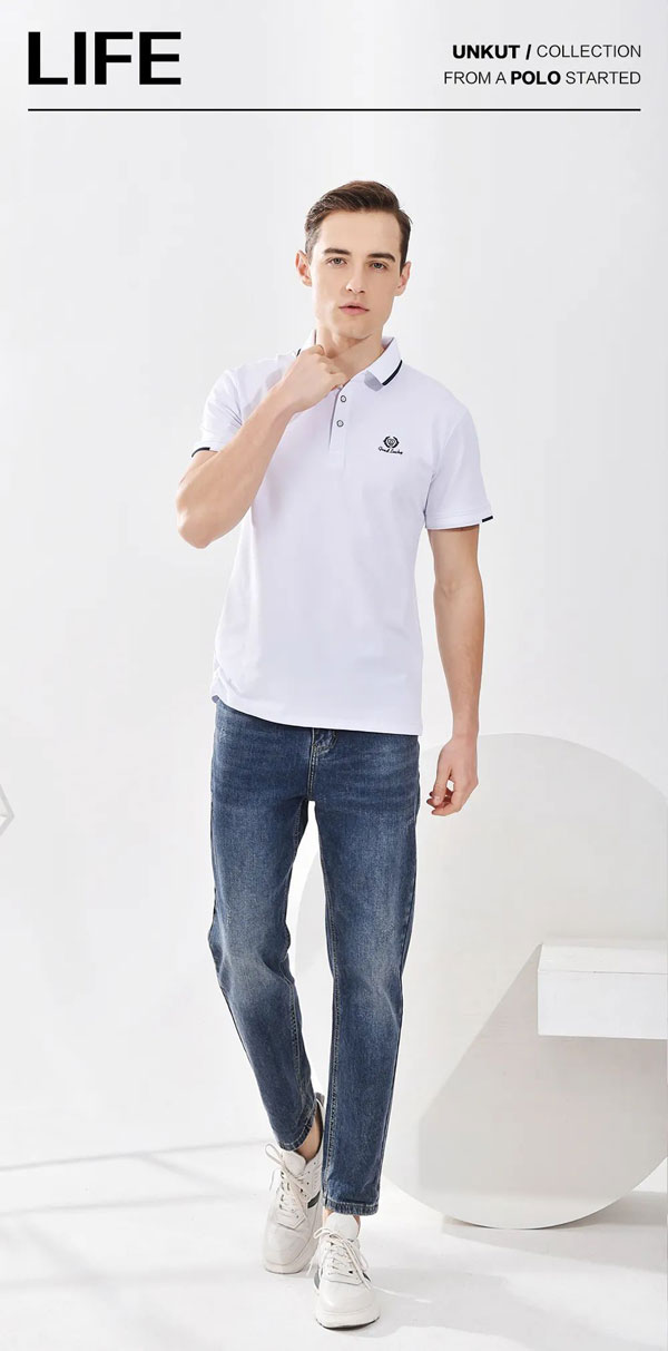 時尚經典翻領Polo版型,選用60支絲光珠地平紋面料,撞色高彈絲螺紋領口設計,點綴精致刺繡,多色選擇,為生活增添不一樣的色彩。