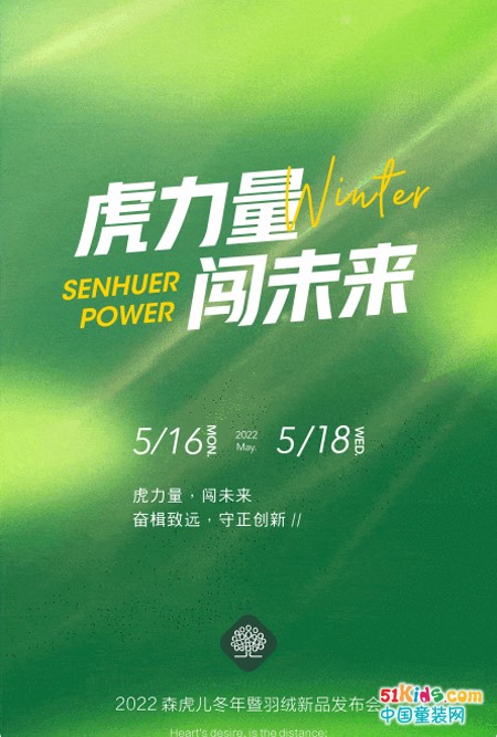 心之所向,就是遠方,擁有真愛就不會再迷茫,拼過才知風雨彩虹,剎那間,懂了地久天長,心之所向,何懼風浪。堅持初心,匠心致遠,篤行奮斗。森虎兒「虎力量·闖未來」2022冬年暨羽絨新品發布會將于5月16日-18日在廣東東莞嘉華大酒店隆重舉行,歡迎各位新老朋友蒞臨參觀指導。屆時森虎兒童裝將呈現一場視覺與時尚的盛宴!