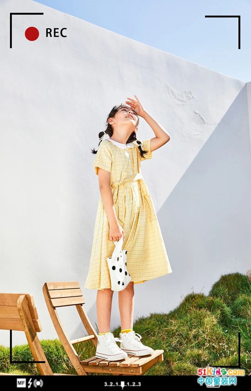 收腰版格子連衣裙,黃藍色格子圖案.,為夏日增添一分清新、治愈。