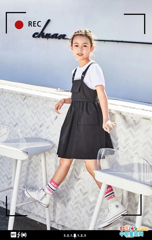 工裝風吊帶裙,搭配簡潔的白T,瞬間成為PARTY上亮眼的風景。