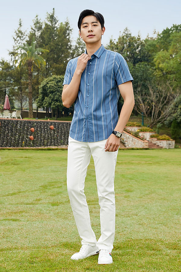 面料的選擇,以功能環保、手感和著裝舒適感俱佳為突破點,注重流行元素,強調時尚精致的細節及簡潔的做工,大膽體現傳統和時尚的魅力組合,極力體現男士非凡風度,簡約簡練的外觀和富有品質內涵,表現成功男士的魅力。從而賦予服裝自身及穿著者不凡的個性,真正做到時尚與品質并重,呈現老爺車男裝服飾的魅力。